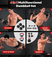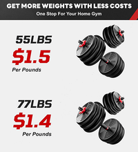 Adjustable Dumbbells, 55/77LBS Free Weight Set, 4 in 1 Dumbbell Set Used as Barbell, Kellebell, Push Up Stand, Fitness Exercise for Home Gym Suitable Men/Women