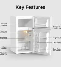 Space Saving & Large Capacity:This small refrigerator with freezer measures 17.9"*18.9"*33.1"(W*D*H) and has a capacity of 3.2 cubic feet. The large capacity and separate storage provide freshness to your favorite beverages, fruits, or vegetables. A cool drink is always there for you after a busy day