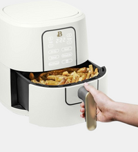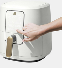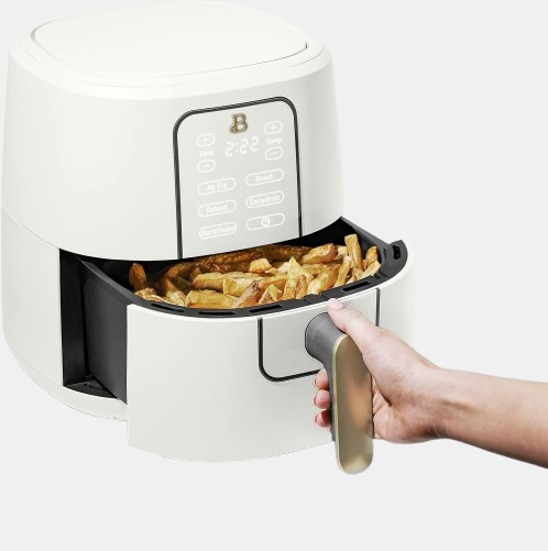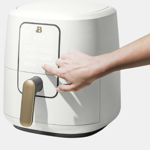 Easy meals for busy weeknights. Thoughtfully designed with sleek touch-activated illumination and our signature gold accents, the Air Fryer preheats food up to 50% faster than a traditional oven with a 5lb food capacity ideal for serving 5-7 people, combines elegant design, contemporary colors and modern silhouettes for high-performance appliances that look beautiful on your kitchen counter.