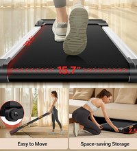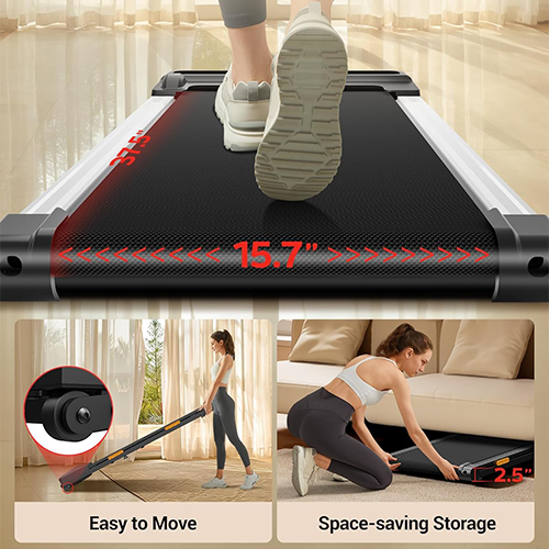 Space-Saving Foldable Treadmill Design : This portable treadmill revolutionizes space efficiency! Measuring just 4.3 inches when folded, it easily stores under beds or sofas. The front transport wheels make movement effortless, saving over 60% space compared to traditional treadmills. Perfect for small apartments and crowded offices seeking compact fitness solutions