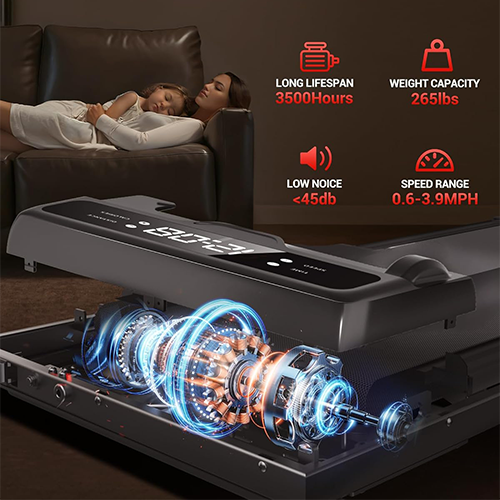Powerful 2.5HP Motor for Smooth Operation : Our walking pad treadmill features a robust 2.5HP motor that delivers consistent performance across 0.6-5MPH speed ranges. This powerful motor outperforms standard 2HP models, maintaining steady operation for both walking and light running. The ultra-quiet operation won't disturb others, making it ideal for office and home environments