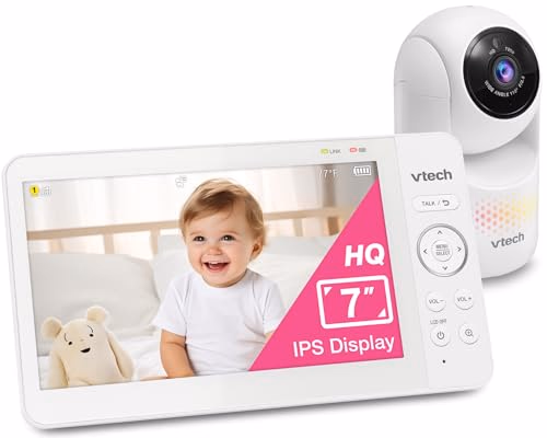 【7" True-Color HQ IPS LCD Screen Baby Monitor】 Advanced HQ Max baby monitor boasts a high-quality 7-inch color LCD screen that provides a clear, detailed view of your baby. With its 178° view of IPS Screen, it ensures you can easily see every little movement and expression with crystal clear images at any angle. 【Remote Pan, Tilt & Zoom with wide angle view 110 degree Video Baby Monitoring】 The Advanced HQ Max baby camera can be remotely panned with 360° panoramic view and tilted up and down for 122°, up to 4X zoom from the parent unit. This video baby monitor is equipped with HQ baby camera with SPLIT-SCREEN option (when more than 1 camera is paired), allowing to see both cameras or babies side by side on the same screen. 【Touch control Adaptive Night Light】 The built-in night light on the baby monitor automatically adjusts its brightness based on the ambient lighting in the nursery. This creates a soothing, calming atmosphere that helps lull your baby into a peaceful sleep without disrupting their natural circadian rhythms. You can choose 7 different colors from the parent unit in baby monitor. 【Comfort with Soothing Sounds and Temp sensor】 5 calming melodies and 5 soft ambient sounds, including a trickling stream and white noise, create a comforting environment to soothe baby. Temperature sensor with indicator helps parents know the comfort level of the baby room.ideal for baby register, baby shower, new parent. 【Long-Lasting Battery Life】 5000mAh rechargeable battery in baby monitor, provides up to 12 hours of continuous video streaming, ensuring you can monitor your little one throughout the day without constant recharging. An excellent baby essentials.