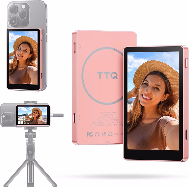 Vlog Selfie Monitor Screen, Magnetic Phone Vlog Selfie Monitor Screen 4K 30fps Bluetooth Remote, Back Camera Monitor for Vlog Live Stream TikTok, Compatible with iPhone & Android | Dealz For You Products