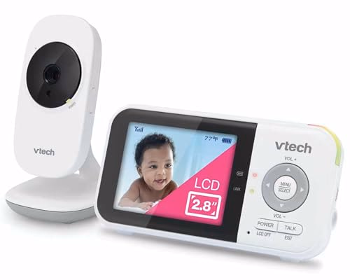 Best-in-class Battery Life and Range - With up to 19 hours of video streaming on a single charge, this system lets you monitor your baby throughout the night easily. During the day, this monitor system's dependable long operation range up to 1,000 feet, lets you go about your day and stays connected with your baby from another room or even from the yard. Privacy Guaranteed. No Wi-Fi or App Pairing - Trusted by US families for more than 3 decades, each VTech monitor is transmitted via secured internal 2.4GHz channel with FHSS technology, so you can rest assured that you're the only one who can hear and see your baby. 2.8" Display Seeing Your Baby in Full Sight Day and Night - The 2.8" display shows your adorable baby's body in full view - no movement is over-sighted. Need more detail? The camera zooms up to 2 times. Soothing Lullabies and 2-Way Talk - Gently lull your baby to sleep with 2 calming melodies and 2 sets of ambient sound. Besides, this system supports 2-way talk back, lets your baby to hear the sound of your voice no matter where you are. Auto-on Screen and Sound Indications - Understand that your rest is as important as your baby's, the monitor's screen can be turn off and the sound be muted to let you the silence needed and to save power. Be rest assured that while it is off, it is still monitoring the baby in the background. When it picks up any sound over your VOX settings, the screen will automatically turn back on. The 3-level sound indicator on the parent unit can let you visually alerted when baby is crying.