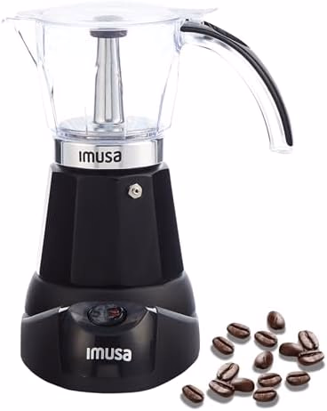 VERSATILE CAPACITY: Brew 6 or 3 espresso cups, 1.5 oz each, letting you adjust the serving size to suit your preference and occasion DURABLE AND STYLISH: Made with a cast aluminum base, this espresso maker combines durability with a sleek design, featuring a brown tinted carafe, black exterior, and black base for a modern touch to your kitchen USER FRIENDLY AND SAFE: This espresso maker features a detachable base with an on/off switch for hassle free brewing, a visual brewing indicator to monitor the process, and a cool touch handle for safe operation and easy portability DIVERSE BREWING OPTIONS: Perfect for making traditional espresso, Cuban coffee, Italian coffee, and Moka, this espresso maker enhances flavor and aroma, catering to a wide variety of preferences and tastes MULTIFUNCTIONAL: This espresso maker is perfect for everyday use, entertaining guests, travel, and office settings, is packaged in a gift box, making it an ideal present for coffee enthusiasts This product contains the following elements: Aluminum (Iron, Chromium Total, Chromium Compounds, Nickel & Nickel Compounds, Manganese & Manganese Compounds, Copper, Magnesium, Zinc, Carbon, Phosphorus, Sulfur, Titanium, and Tin). For more information about the chemicals in this product visit: imusausa.com/commitment