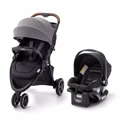 Durable Design: All-terrain never-flat rubber tires that offer easy maneuverability Integrated Travel System: Includes the Graco SnugRide 30 Lite Infant Car Seat Comfortable Ride: ComfiTech in-seat suspension provides a smooth, comfortable ride Easy Storage: One-hand, self-standing fold plus a folding belly bar for a more compact fold Practical Features: A full-sized canopy and removable, dishwasher-safe snack tray for convenience Stylish: The leatherette stroller handle is stylish and provides a smooth grip Supports Infants: Suitable for infants from 4-30 lb and up to 30 in the included car seat Dishwasher-safe child's snack tray with cup holder keep drinks and snacks close by and easily removes for cleaning Included parent's tray features cup holders for drinks on the go
