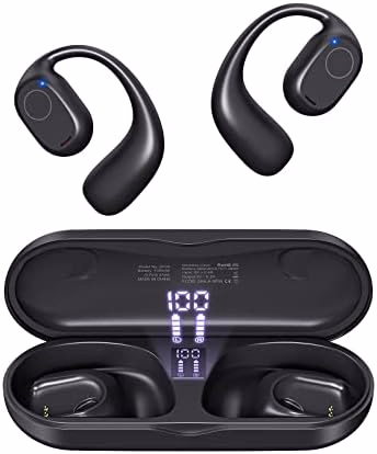 PSIER Open Ear Headphones, Bluetooth 5.3 Wireless Sports Headphones with Digital Display Charging Case 40 Hours Playtime True Earbuds with Earhooks for Running, Walking, Workout