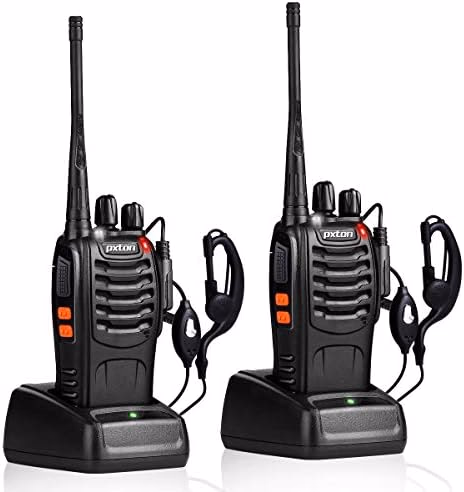 pxton Walkie Talkies Rechargeable Long Range Two-Way Radios with Earpieces,2-Way Radios UHF Handheld Transceiver Walky Talky with Flashlight Li-ion Battery and Charger(2 Pack)
