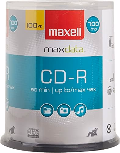 Maxell 648200, Premium Quality Noise free Surface Playback Recordable CDs 700Mb Storage – 2x to 48x, Write Speed 80 minutes - Blank CDs, CD Storage & Reusable Spindle Case Holder – 100 Pack